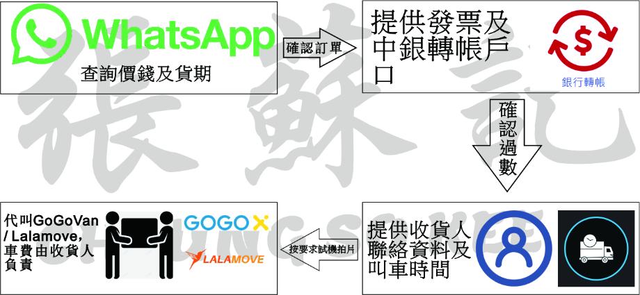 大部份主要產品可於whatsapp 詢價。確認過數後,可馬上代叫GoGoVan / Lalamove,車費由收貨人負責